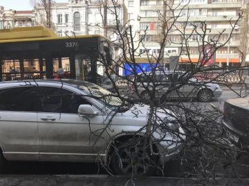 Одна із власниць розповіла: працює неподалік і завжди залишає машину на одному й тому ж місці. Гілки повністю перекрили шлях, на частині бульвару був ускладнений рух транспорту, прибирати не поспішали.