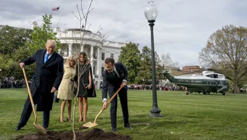 Президент Франції Еммануель Макрон зі своєю дружиною Бріджит постили Вашингтон на честь 250-річчя відносин між двома державами. Саджанець дуба був привезений першими особами Франції з знаменитого лісу Біло, де ще в 1918 року відбулася перша велика битва в Першій світовій війні за участю американських солдатів. Саджанець був урочисто посаджено на галявині Білого дому разом з Дональдом і Меланією Трамп.