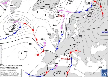 Сегодня на юго-западе Европы бушует циклон Wenke, поэтому здесь будут очень сильные дожди. Но у нас действует антициклон Yogi, так что существенных осадков ожидать не стоит, будут только в некоторых местах туманы, и поморосит дождик.