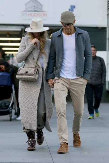 Для романтичної прогулянки зірка серіалу "Пліткарка" вибрала довге сіре пальто і крислатий капелюх, а герой фільму "Дедпул" - білу футболку, бежеві штани і блакитний кардиган.