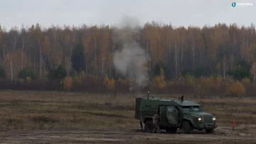 Українські військові протестували новітню смертоносну зброю - мобільний мінометний комплекс "Барс-8ММК" на військовому полігоні під Києвом.
