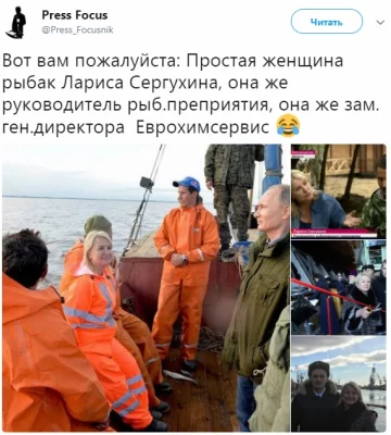 Цікаво, що у Сергухіної після поїздки на озеро із Путіним з'явилося кумедне прізвисько "рибачка Соня". І прозвали її так не позаочі, а відкрито, та ніяк не зачепили гідності. Своїх ймовірних стосунків вона коментувати не збирається, але й надалі підживлює інтерес до своєї персони.